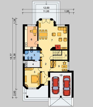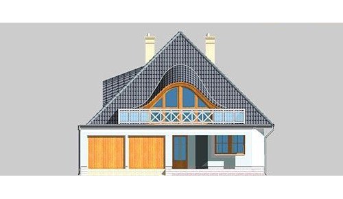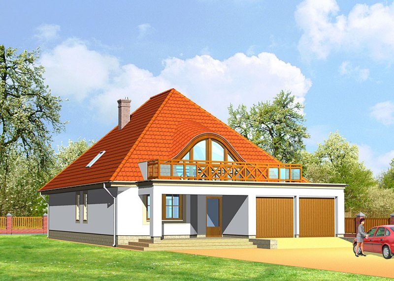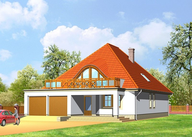 Dom jednorodzinny, parterowy, z poddaszem użytkowym oraz dwustanowiskowym garażem.