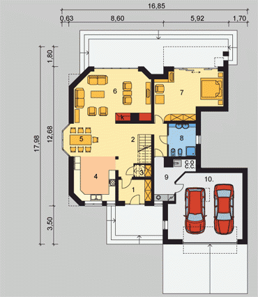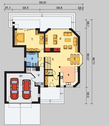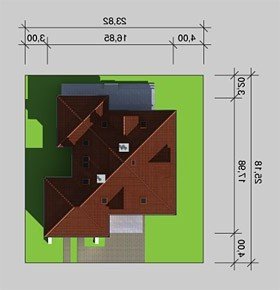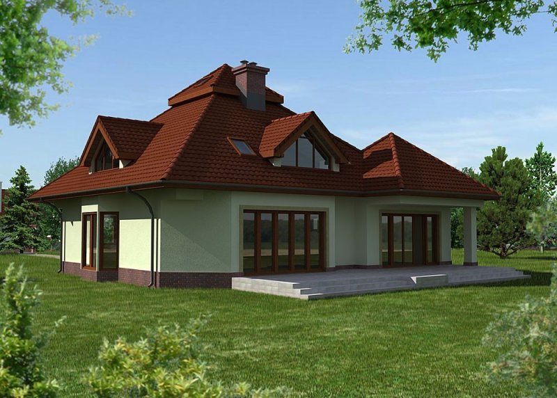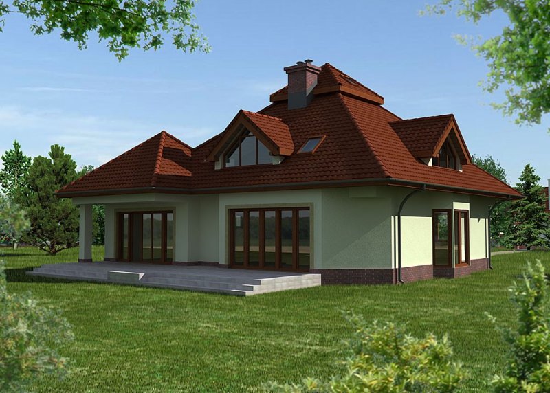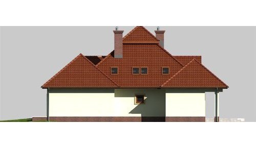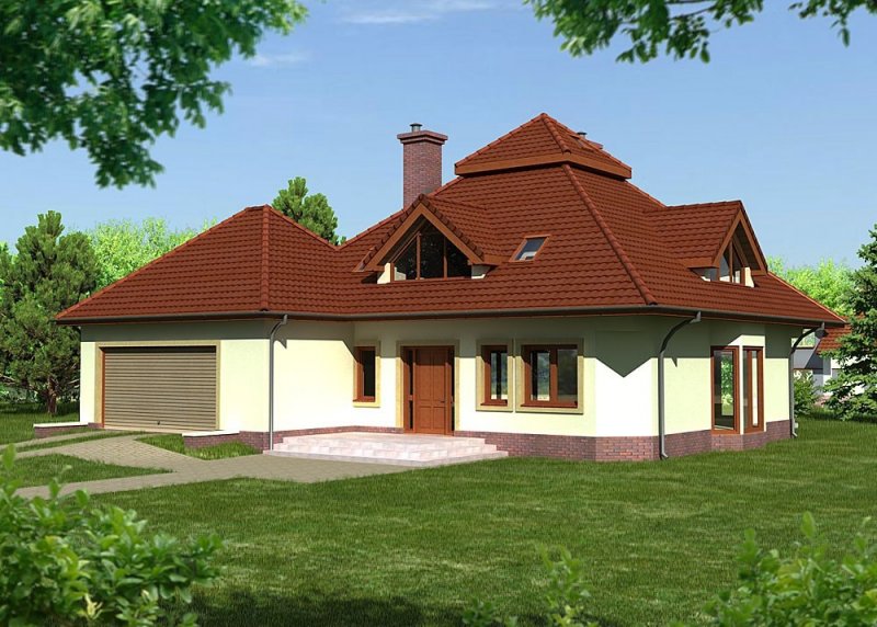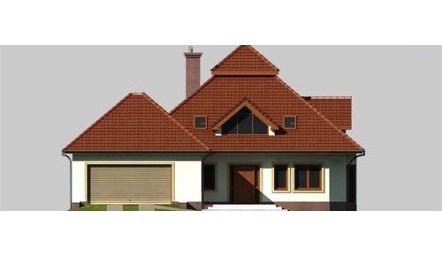 Dom jednorodzinny, parterowy, z poddaszem użytkowym oraz garażem dwustanowiskowym.