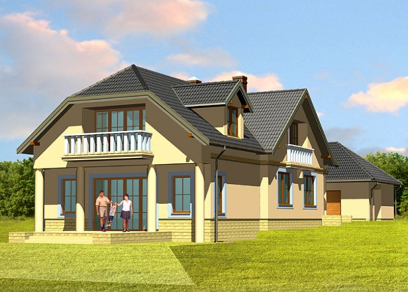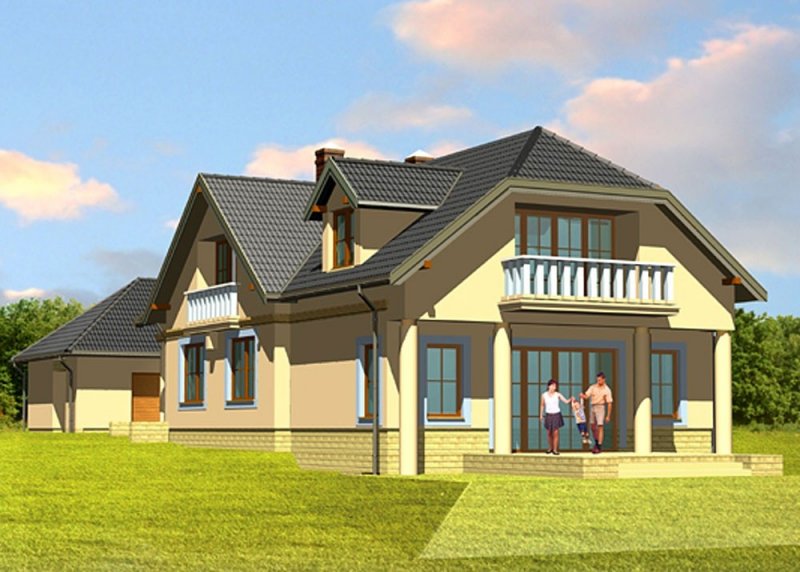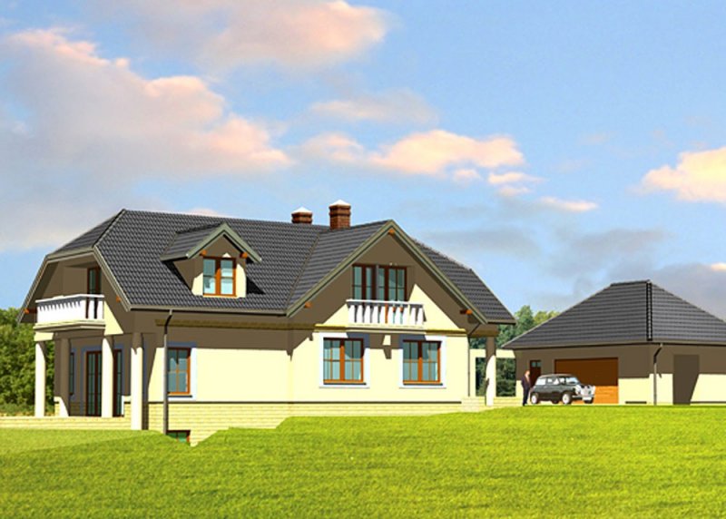 - Elewacje: wykończone tynkiem cienkowarstwowym, cokoły obłożone płytkami klinkierowymi