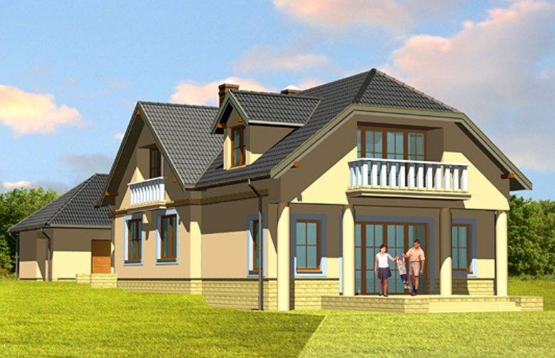 Dom jednorodzinny, parterowym, z poddaszem użytkowym, podpiwniczony.