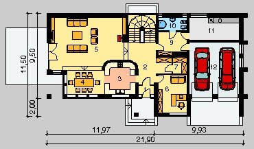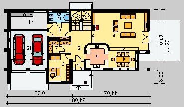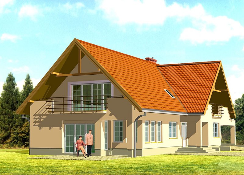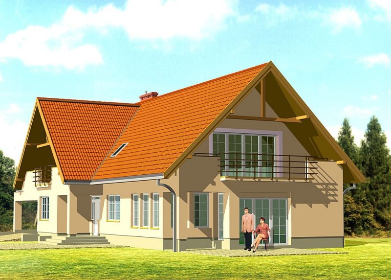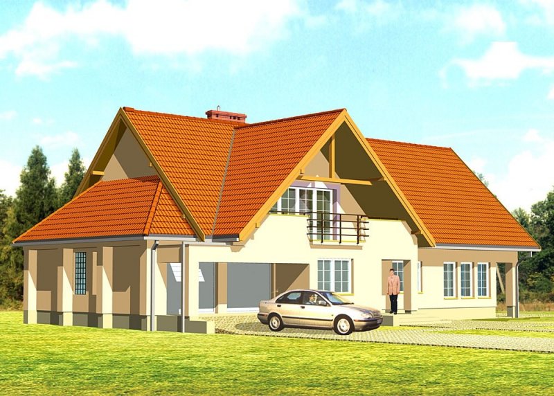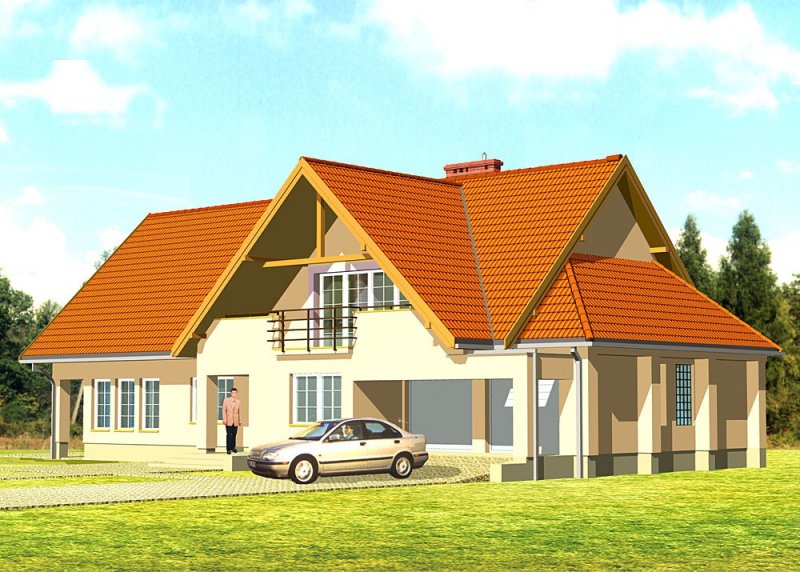 Dom jednorodzinny, parterowy, z poddaszem użytkowym, częściowo podpiwniczony, z dwustanowiskowym garażem.