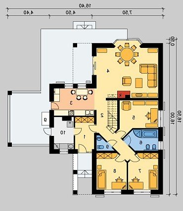 Dom jednorodzinny, parterowy, z poddaszem użytkowym.