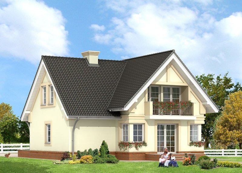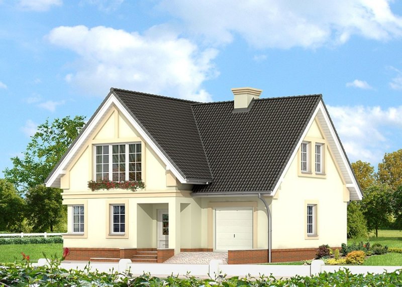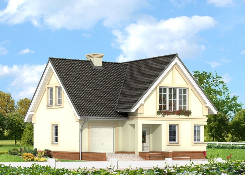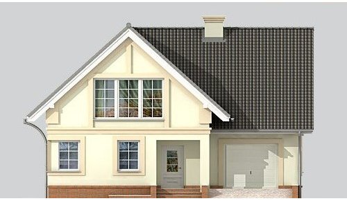 Dom jednorodzinny, parterowy, z poddaszem użytkowym, z jednostanowiskowym garażem, częściowo podpiwniczony.