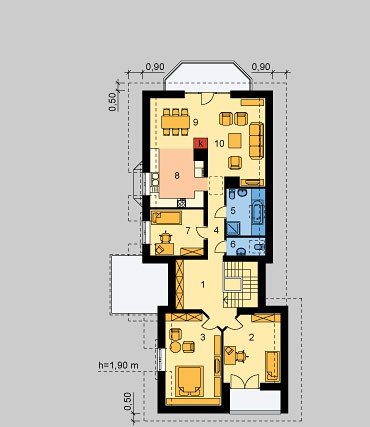 10. Pokój dzienny 1(21.61) 9.51m