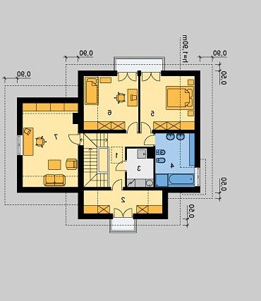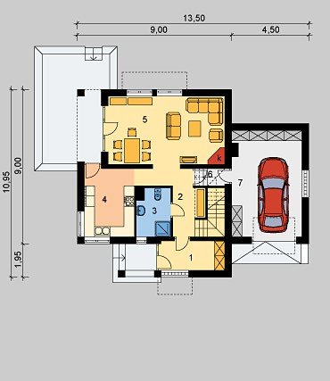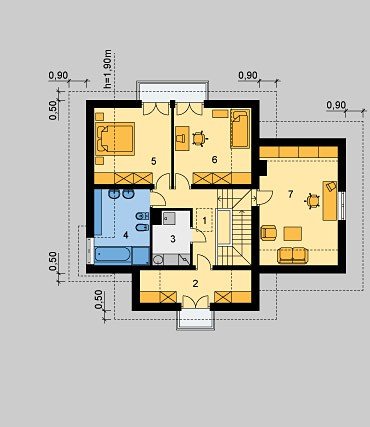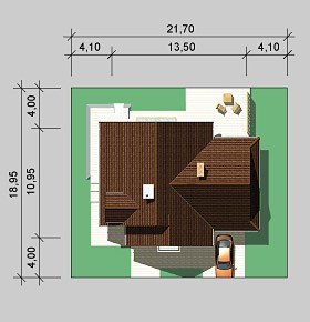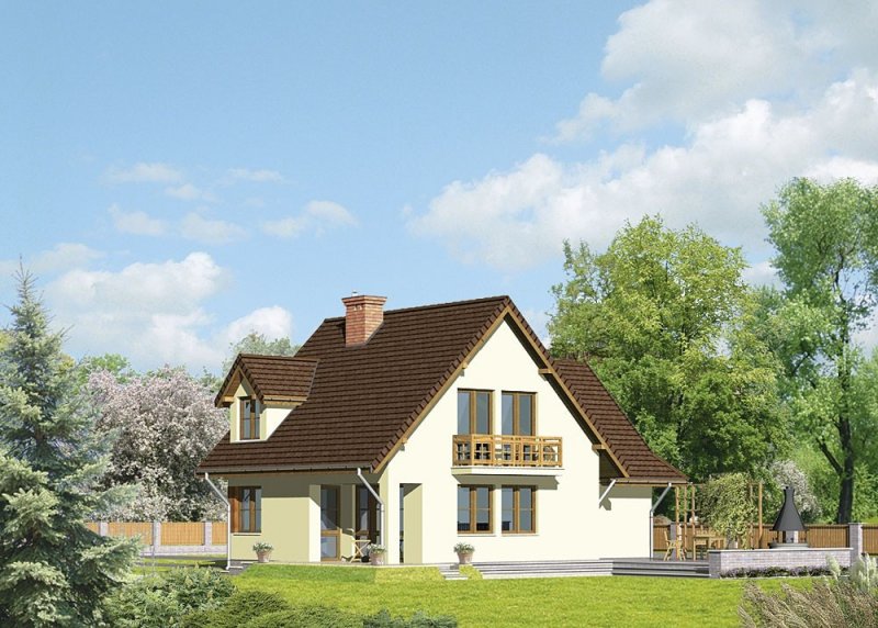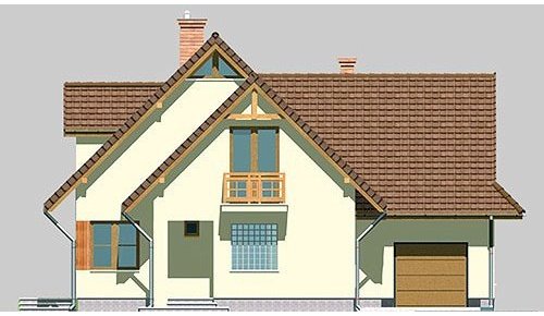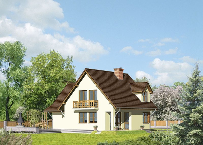 Dom jednorodzinny, parterowy, z poddaszem użytkowym i jednostanowiskowym garażem.