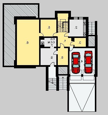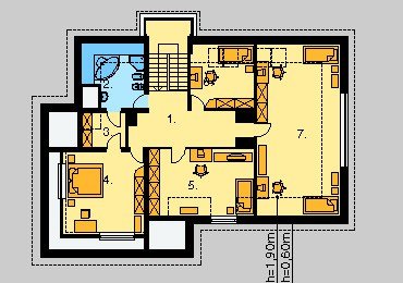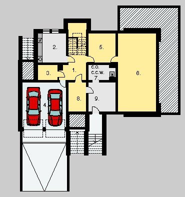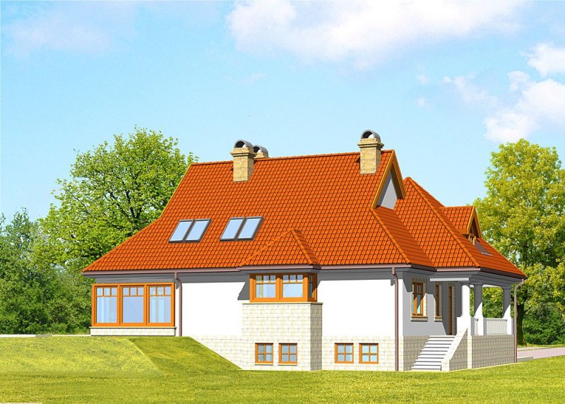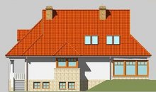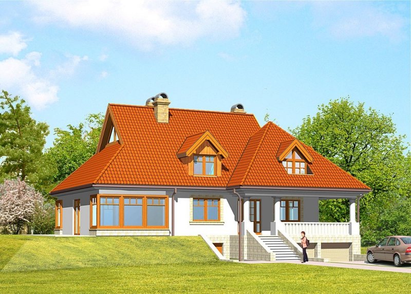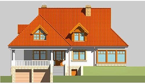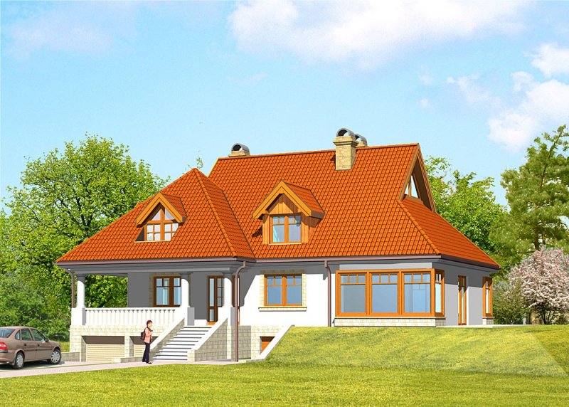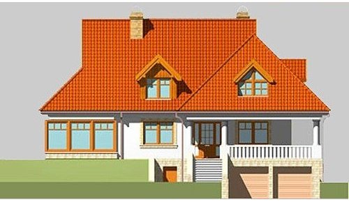 Dom jednorodzinny, parterowy, z poddaszem użytkowym oraz dwustanowiskowym garażem.