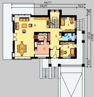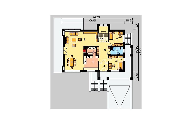 - Elewacje: wykończone tynkiem cienkowarstwowym, cokoły obłożone płytkami klinkierowymi