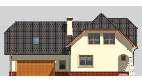 Dom jednorodzinny, parterowy, niepodpiwniczony, z poddaszem użytkowym i dwustanowiskowym garażem.
