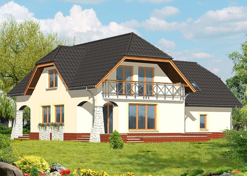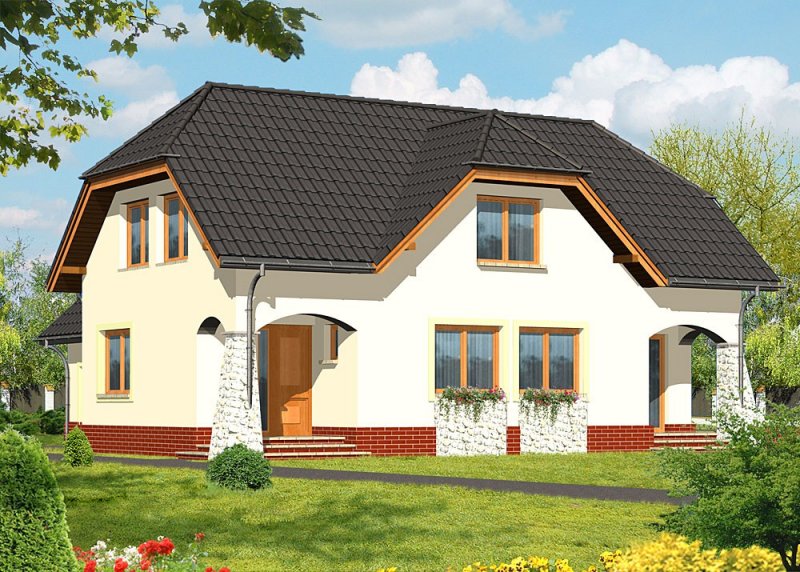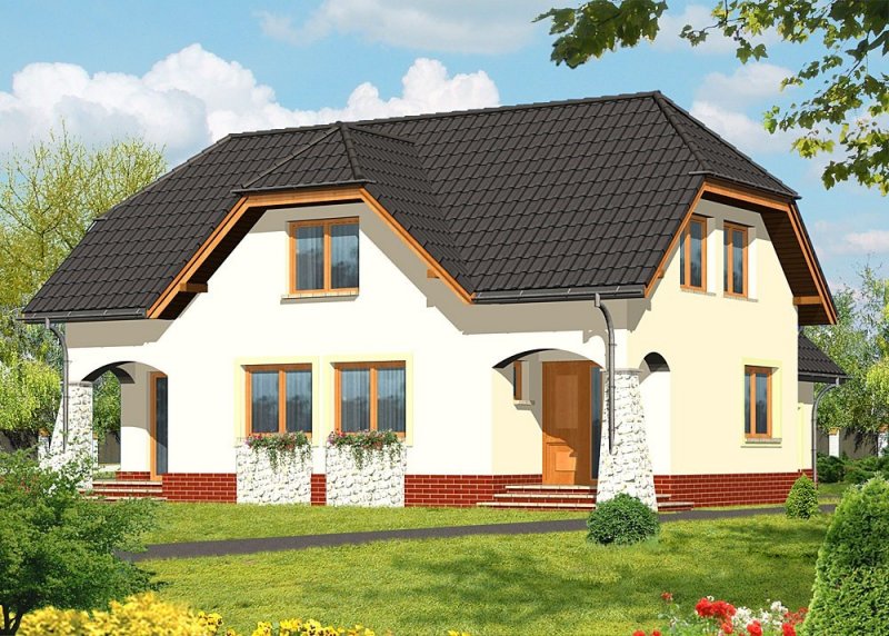 - Pokrycie dachu: dachówka ceramiczna Renesansowa L15 Koramik firmy Wienerberger