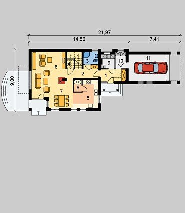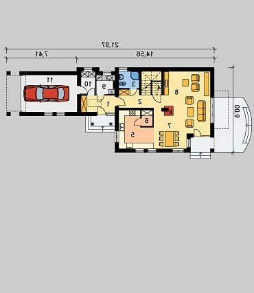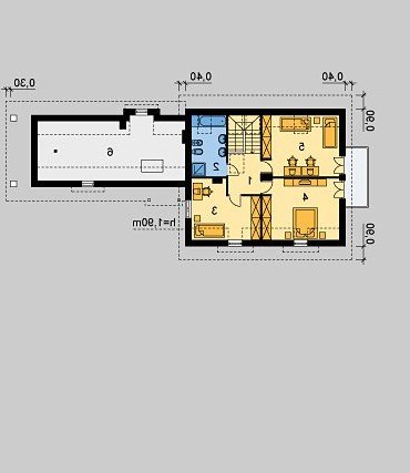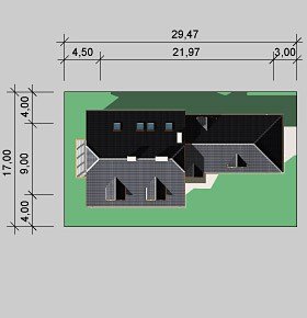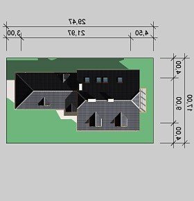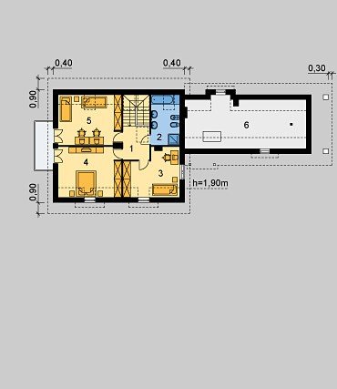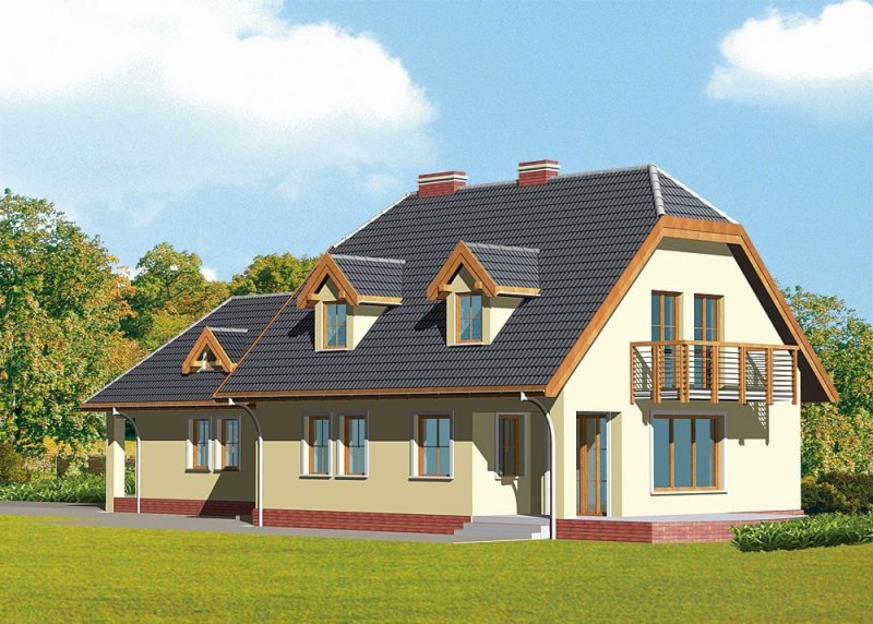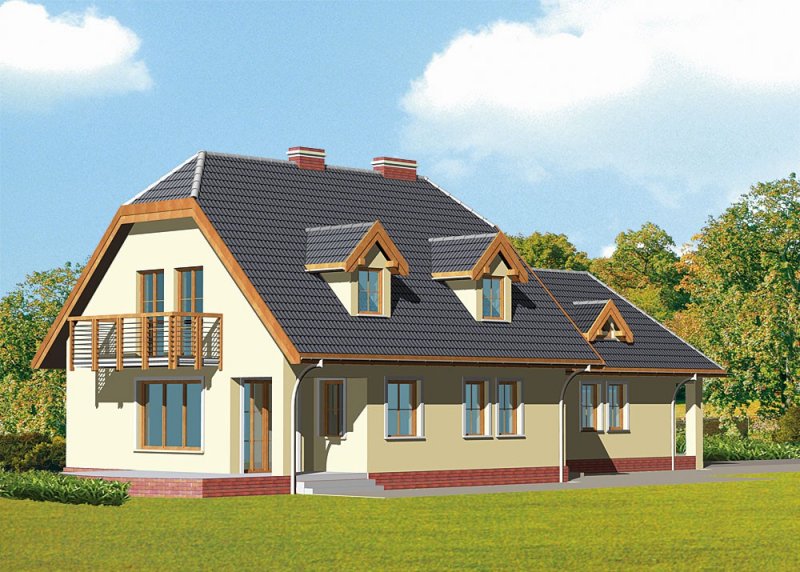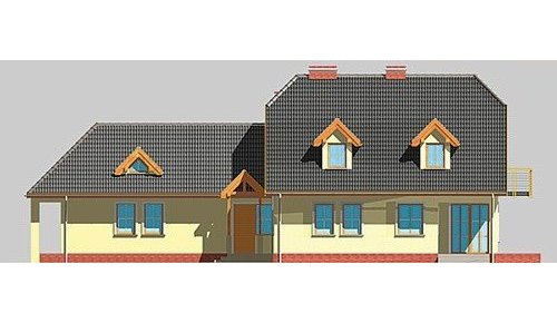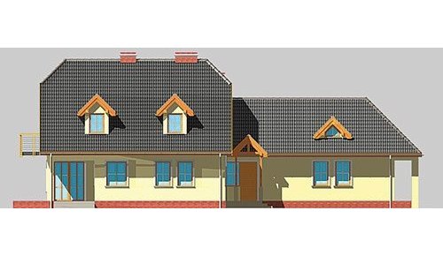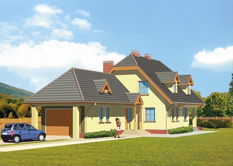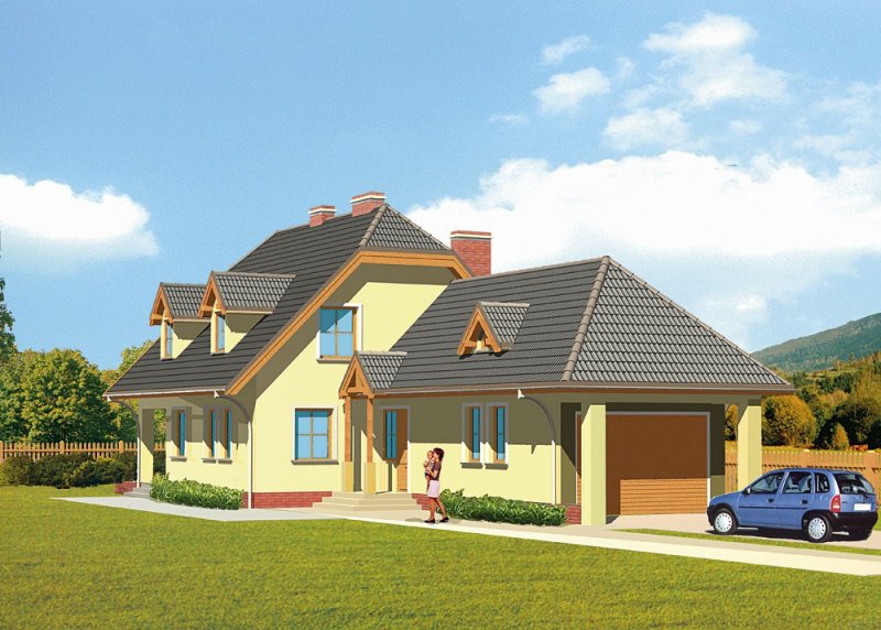 Dom jednorodzinny, parterowy, z poddaszem użytkowym, i jednostanowiskowym garażem.