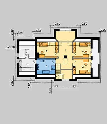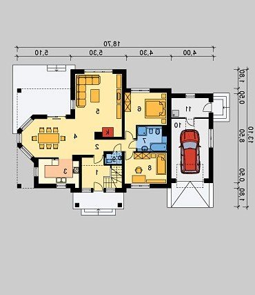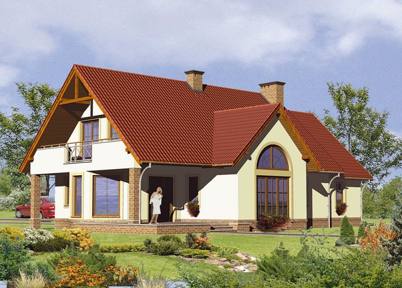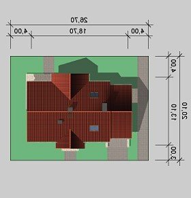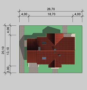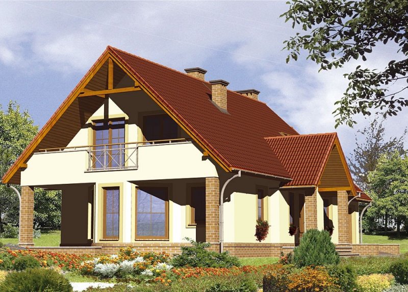 Dom jednorodzinny, parterowy, niepodpiwniczony z poddaszem użytkowym i jednostanowiskowym garażem.