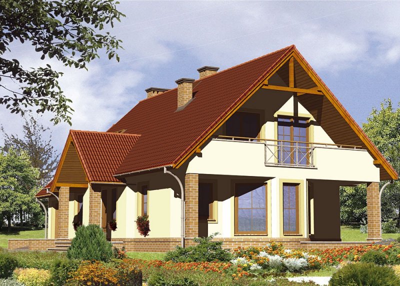 - Elewacje: wykończone tynkiem silikonowym, cokoły wykończone cegłami klinkierowymi