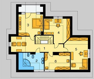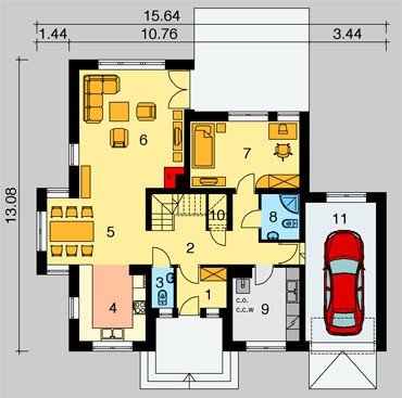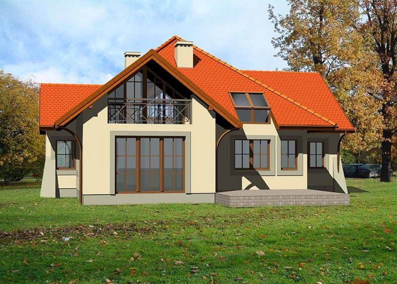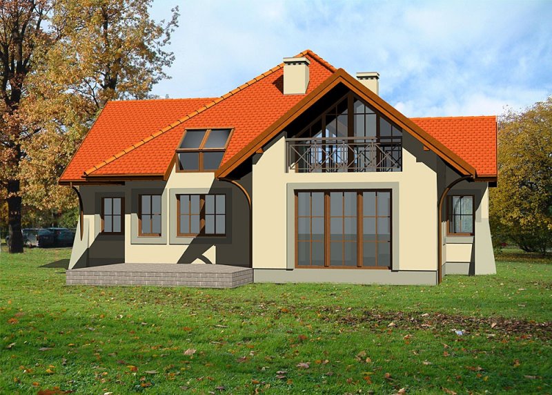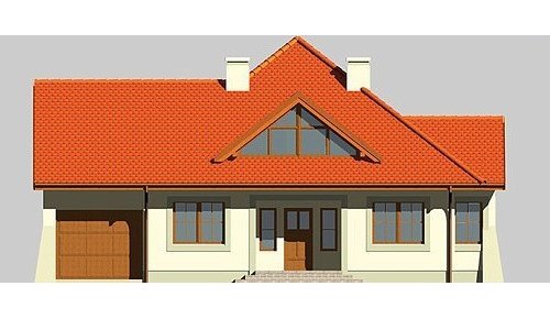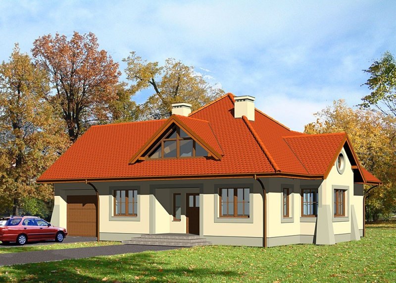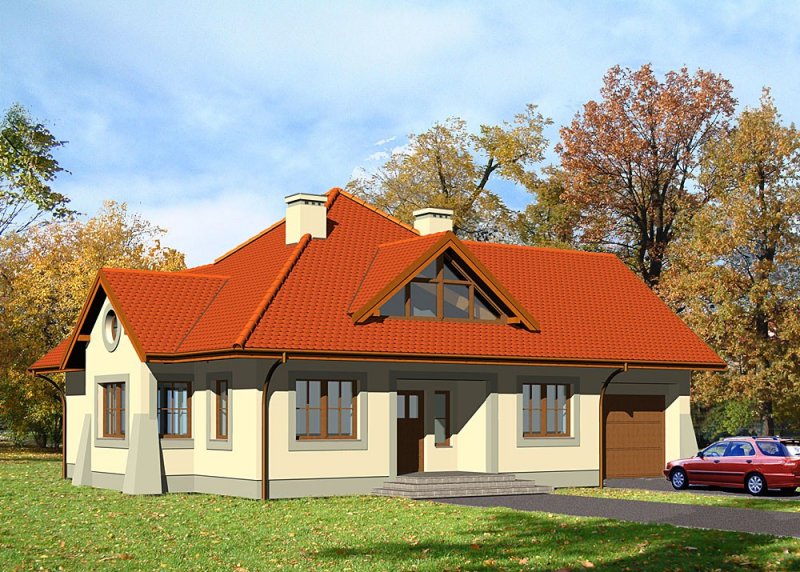 Dom jednorodzinny, parterowy, z poddaszem użytkowym, z jednostanowiskowym garażem.