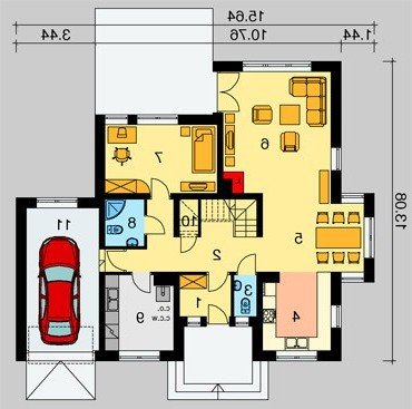 - Elewacje: wykończone tynkiem mineralnym, cokoły obłożone płytkami klinkierowymi