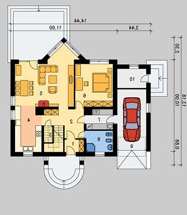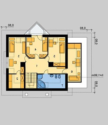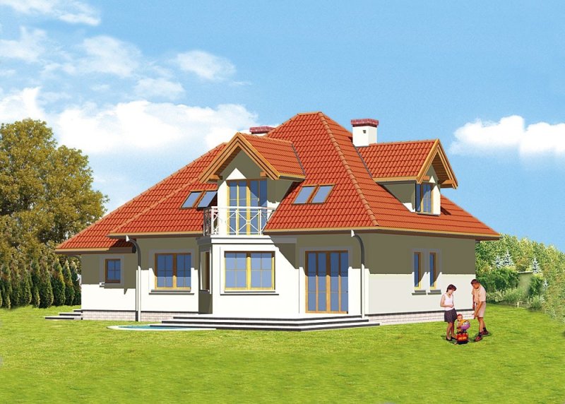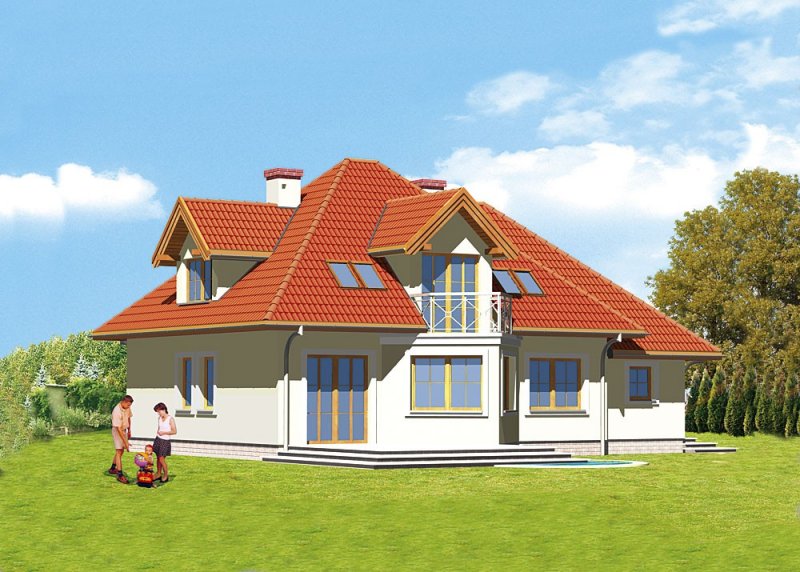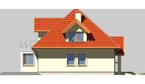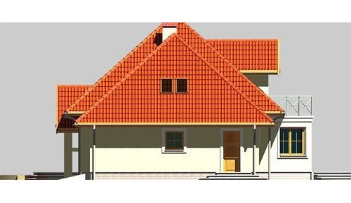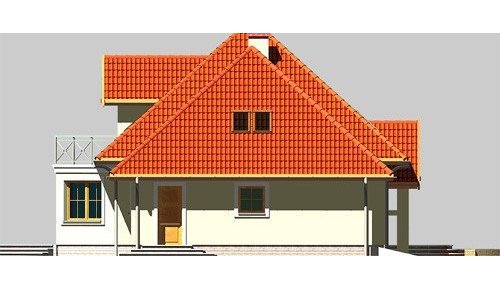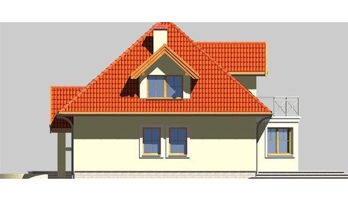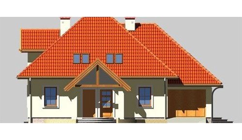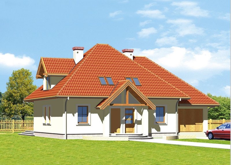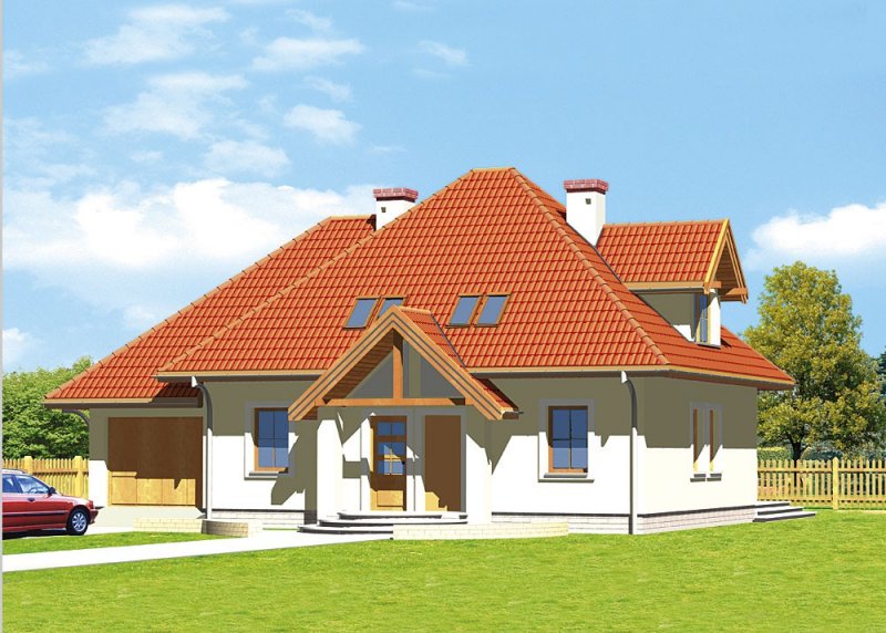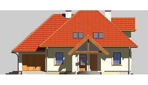 Dom jednorodzinny, parterowy, z poddaszem użytkowym i jednostanowiskowym garażem.