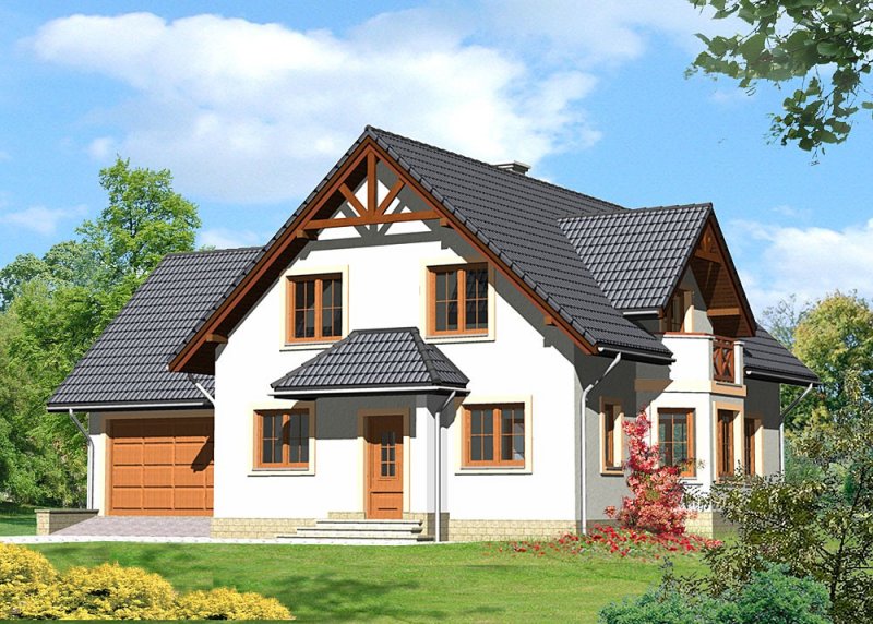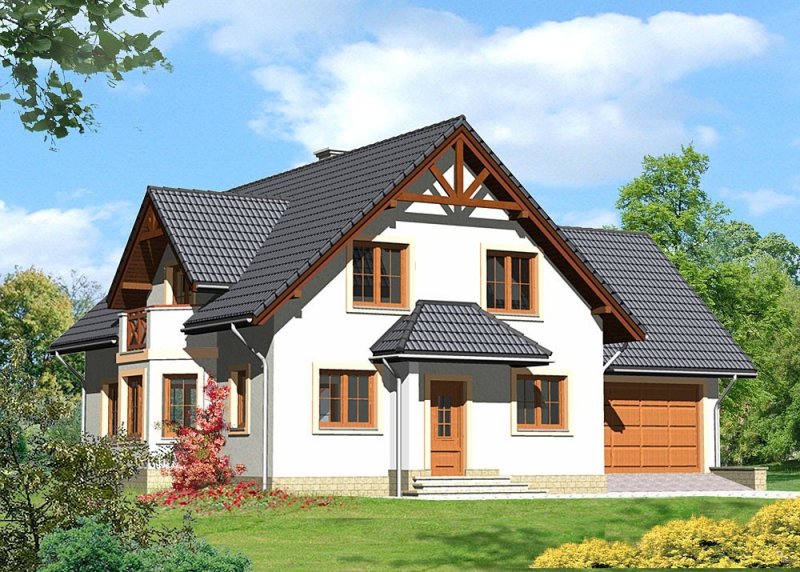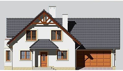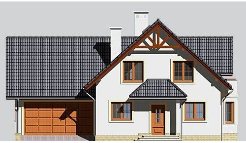 Dom jednorodzinny, parterowy, z poddaszem użytkowym i jednostanowiskowym garażem.