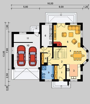 - Pokrycie dachu: dachówką ceramiczną