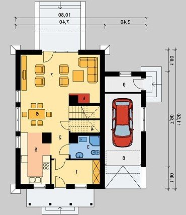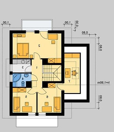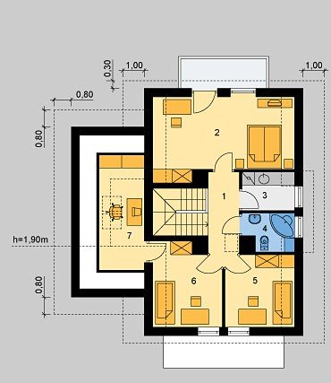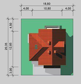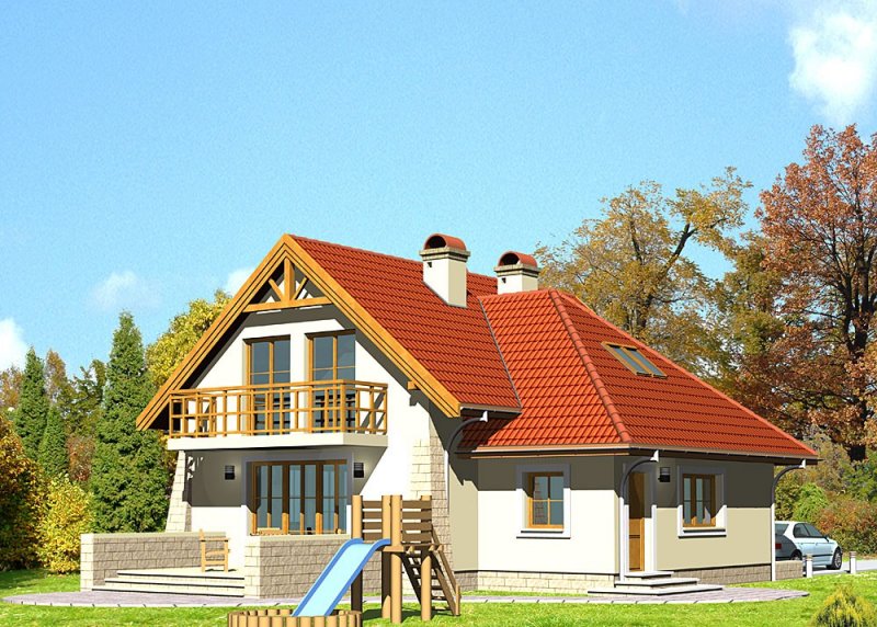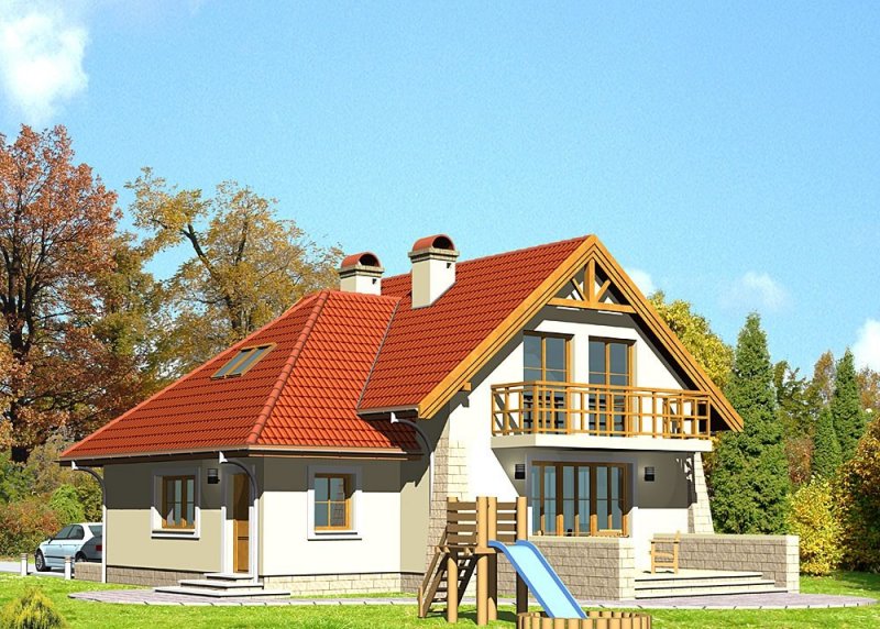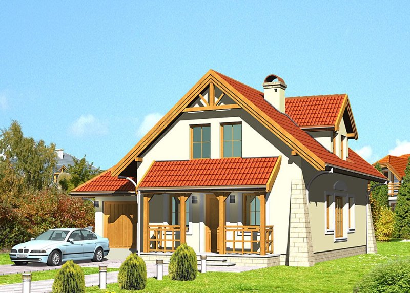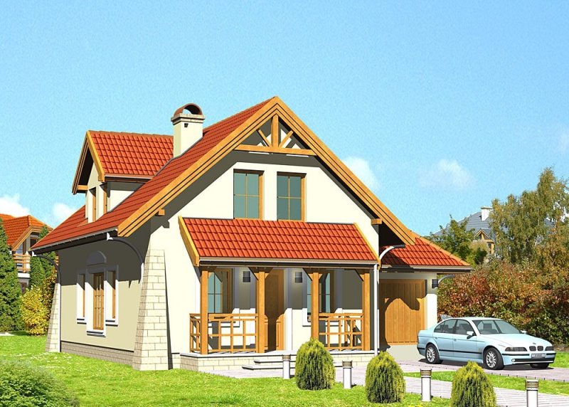 Dom jednorodzinny, parterowy, z poddaszem użytkowym i jednostanowiskowym garażem.