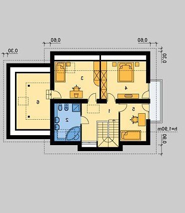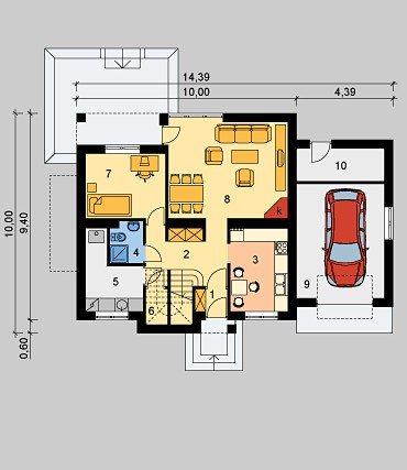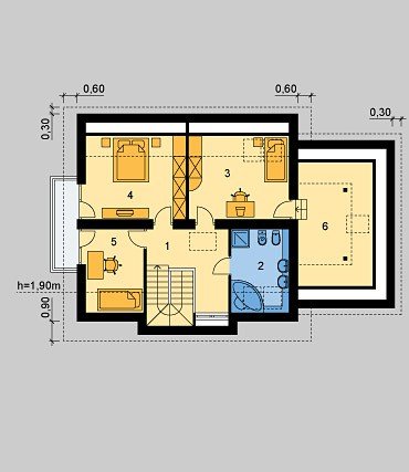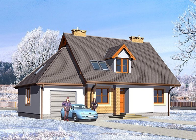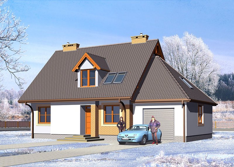 Dom jednorodzinny, parterowy, niepodpiwniczony z poddaszem użytkowym i jednostanowiskowym garażem.