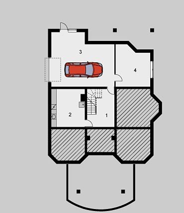 Dom jednorodzinny, parterowy, z poddaszem użytkowym, częściowo podpiwniczony z jednostanowiskowym garażem.