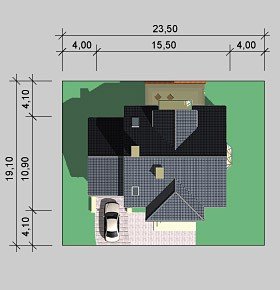 - Min. wymiary działki 23.50x19.10 m