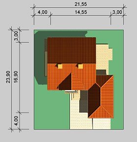 - Min. wymiary działki 21.55x23.90 m