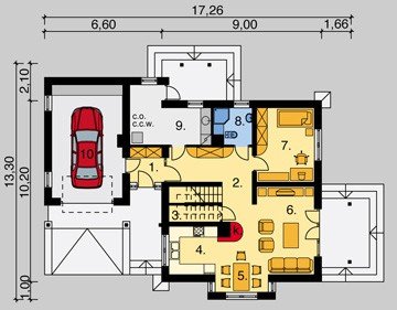 - Pokrycie dachu: dachówką ceramiczną