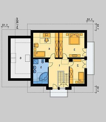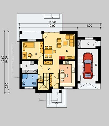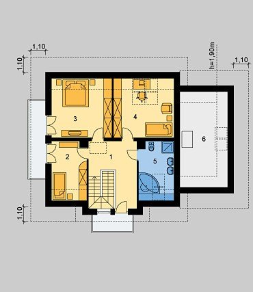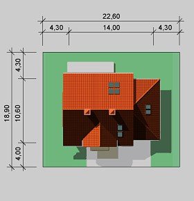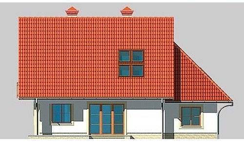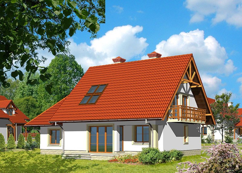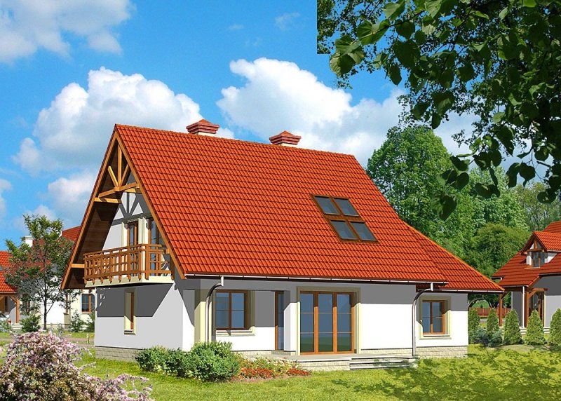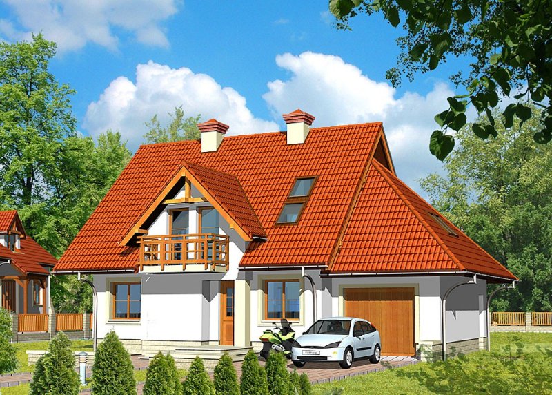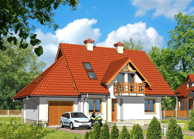 Dom jednorodzinny, parterowy, z poddaszem użytkowym i jednostanowiskowym garażem.
