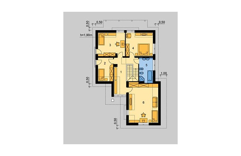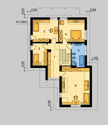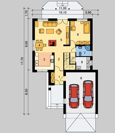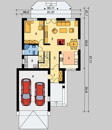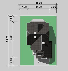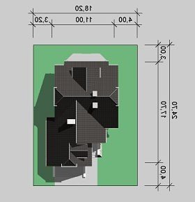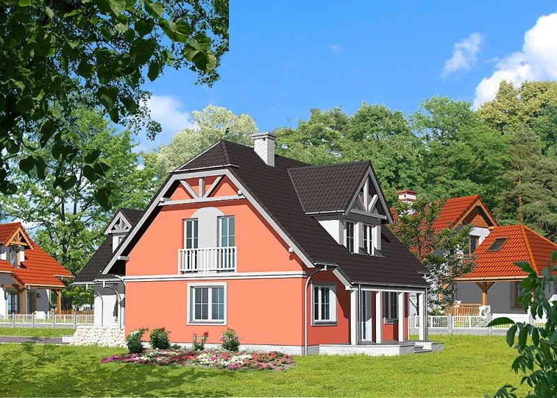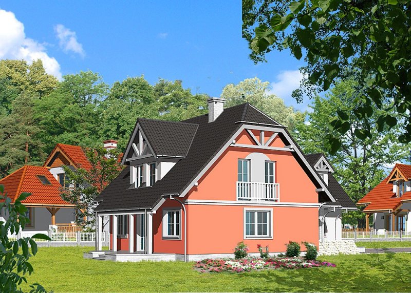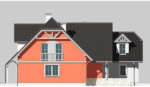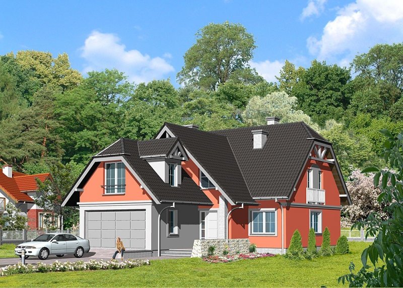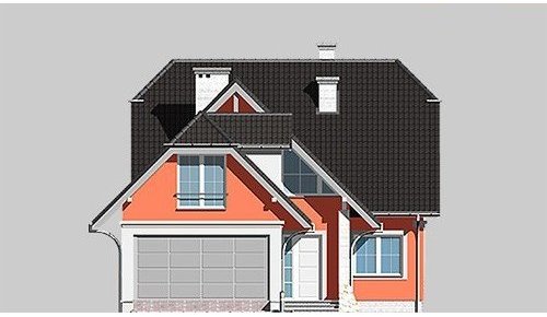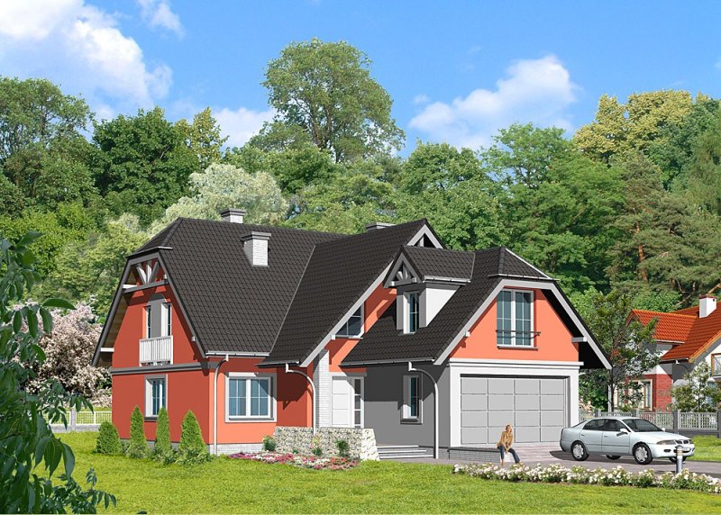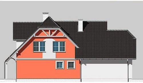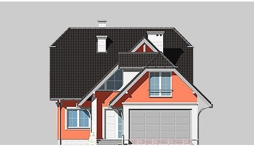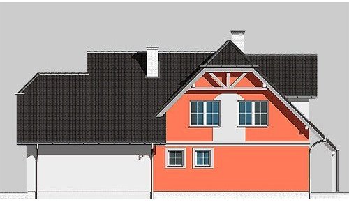 Dom jednorodzinny, parterowy, z poddaszem użytkowym i dwustanowiskowym garażem.