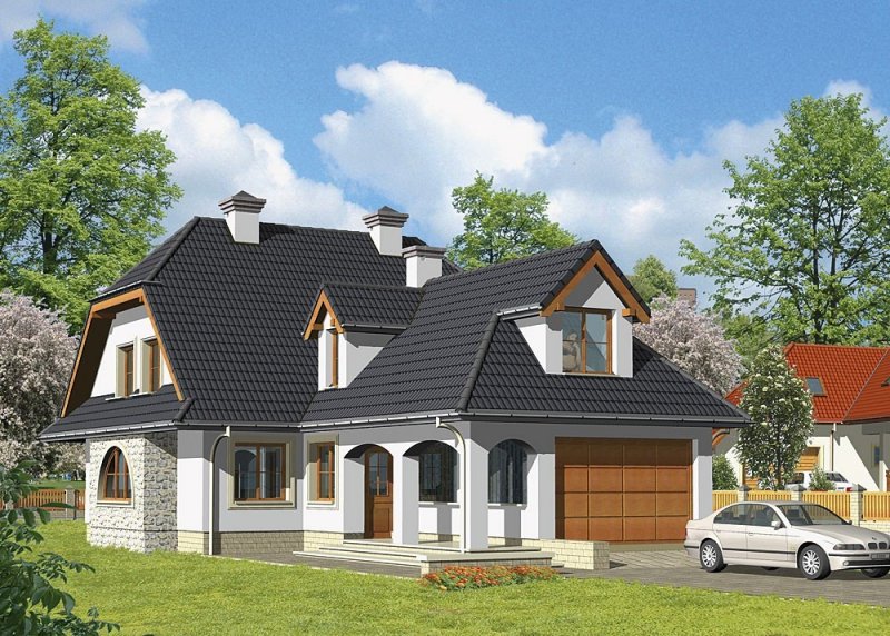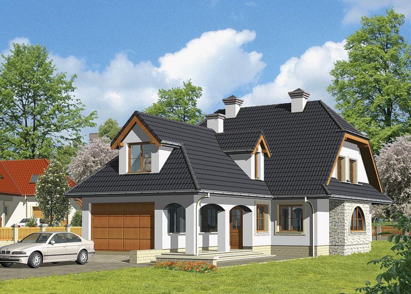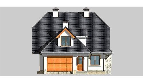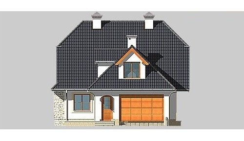 Dom jednorodzinny, parterowy, z poddaszem użytkowym i jednostanowiskowym garażem.