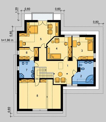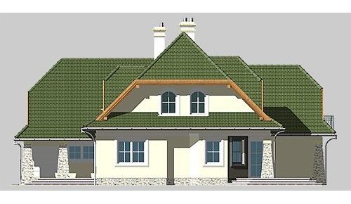 - Elewacje: wykończone tynkiem silikonowym, cokoły obłożone kamieniem wapiennym