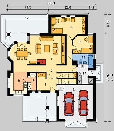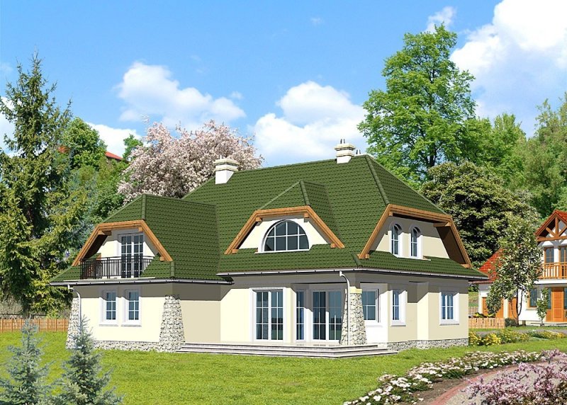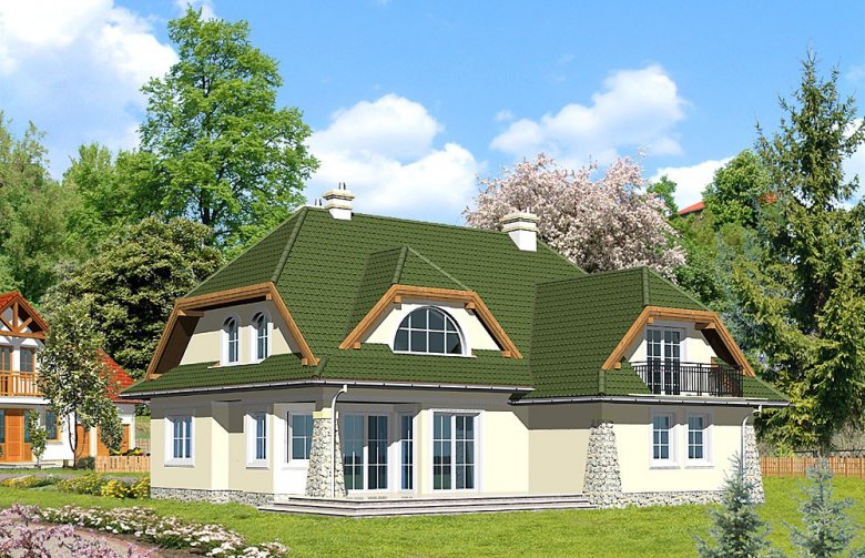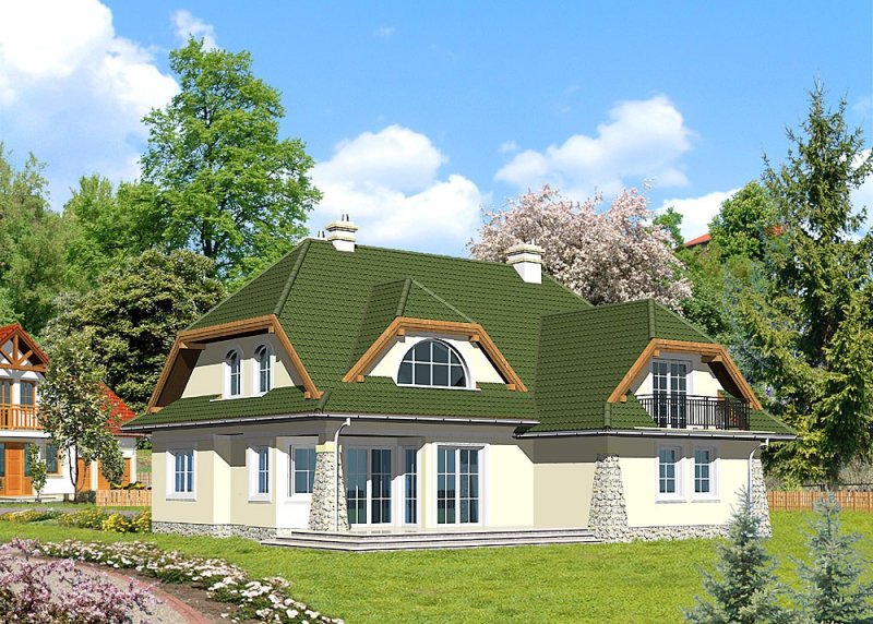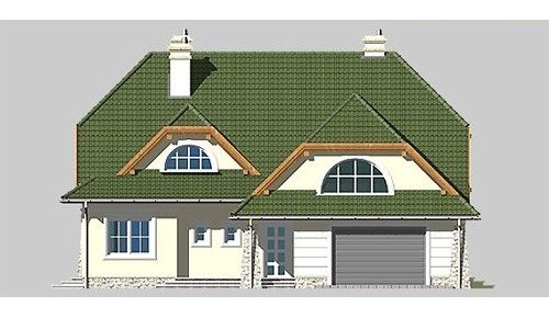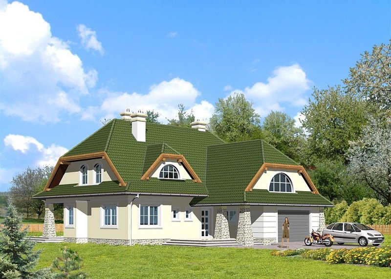 Dom dwupokoleniowy, parterowy, z poddaszem użytkowym i dwustanowiskowym garażem.