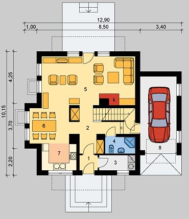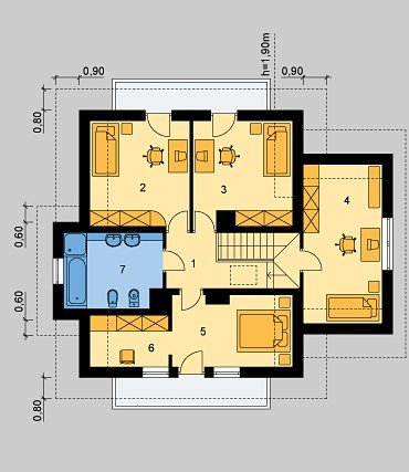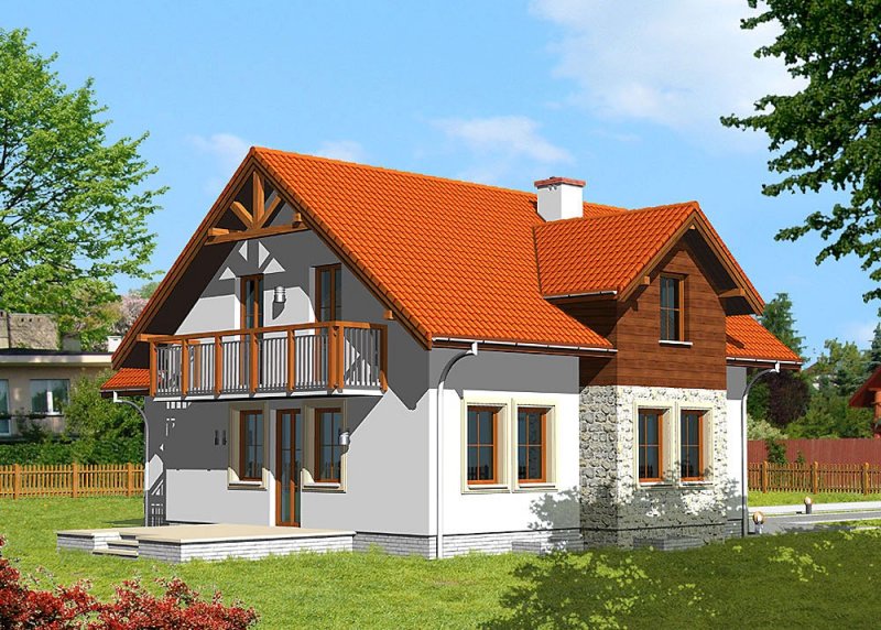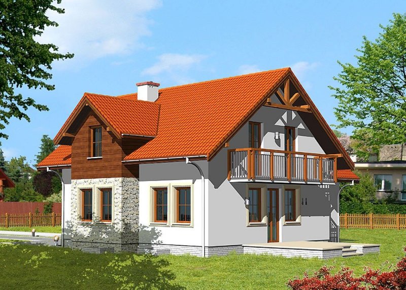 Dom jednorodzinny, parterowy, z poddaszem użytkowym, podpiwniczony, z jednostanowiskowym garażem.