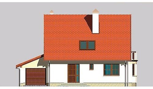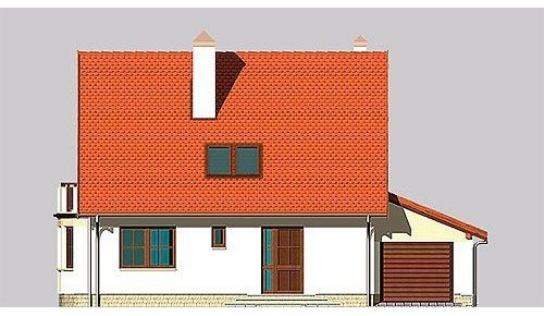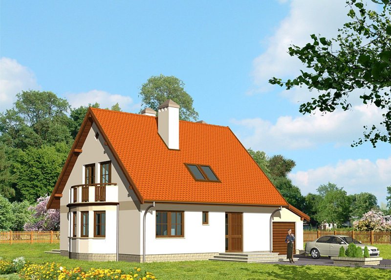 Dom jednorodzinny, parterowy, z poddaszem użytkowym i jednostanowiskowym garażem.