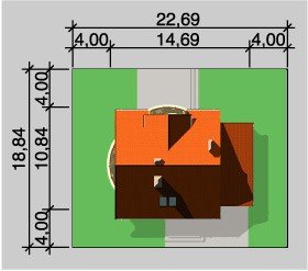 - Min. wymiary działki 22.70x18.80 m