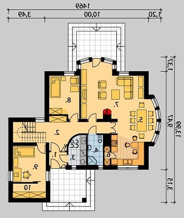 - Elewacje: wykończone tynkiem mineralnym, cokoły obłożone kamieniem naturalnym