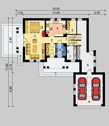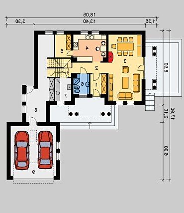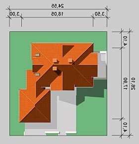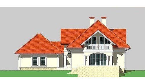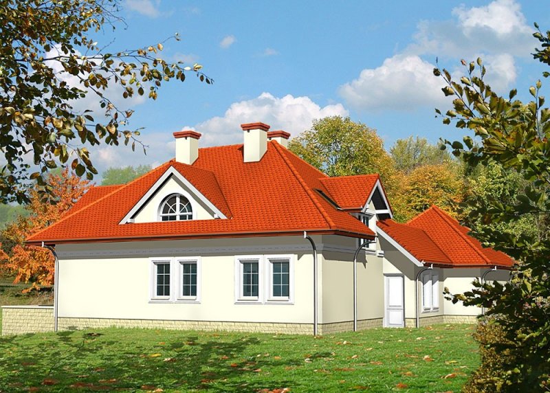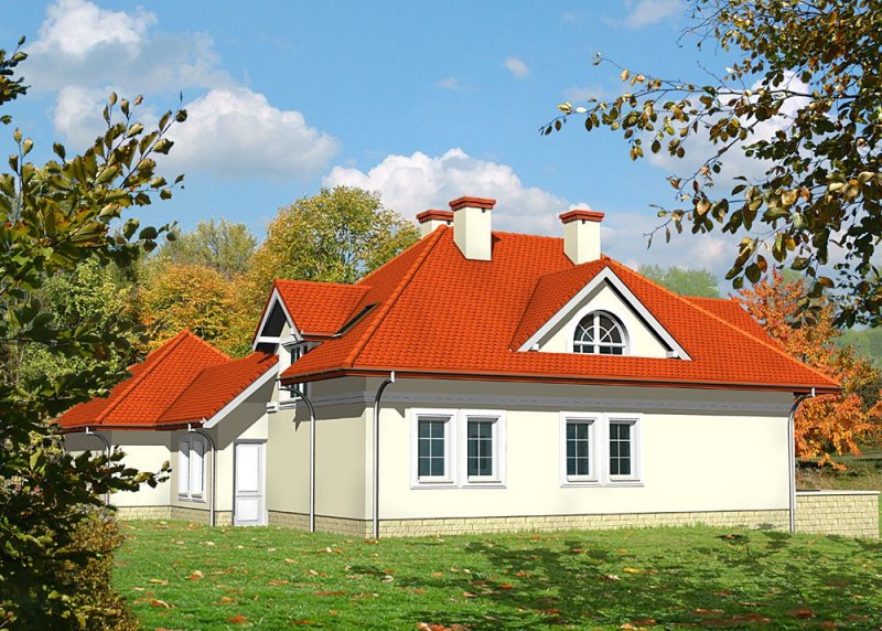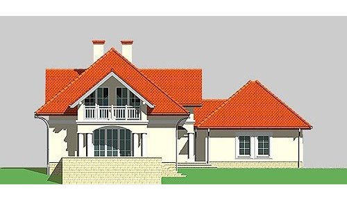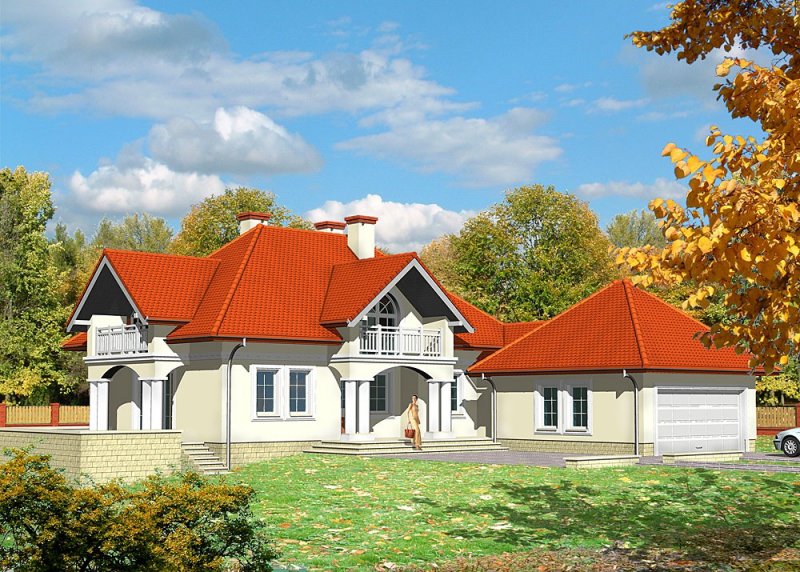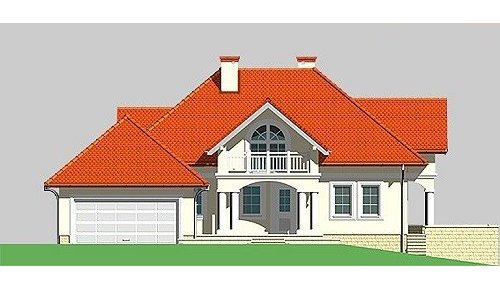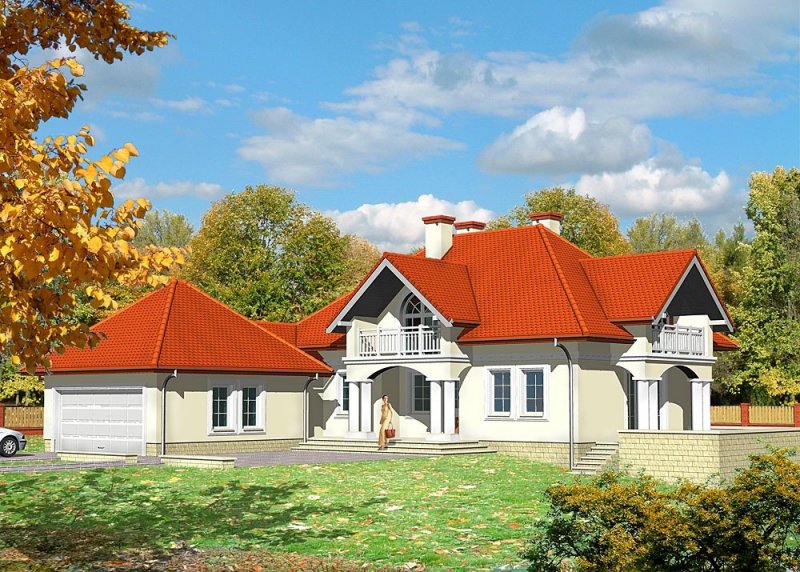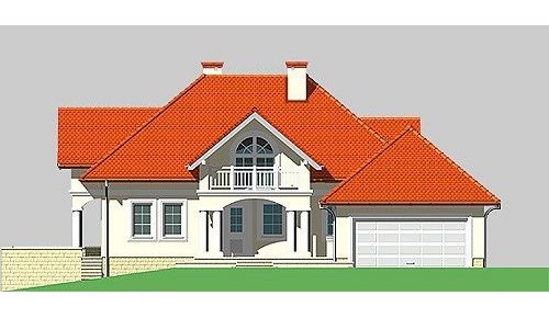Dom jednorodzinny, parterowy, z poddaszem użytkowym i dwustanowiskowym garażem.