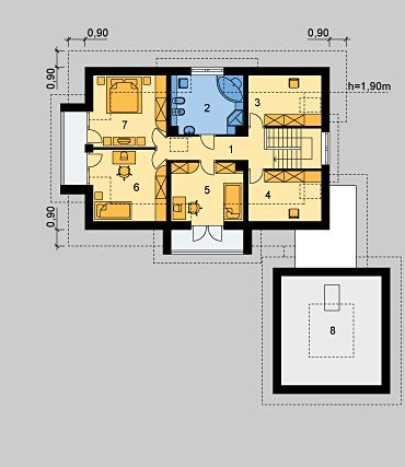- Elewacje: wykończone tynkiem silikonowym, cokoły budynku obłożone kamieniem naturalnym ciętym