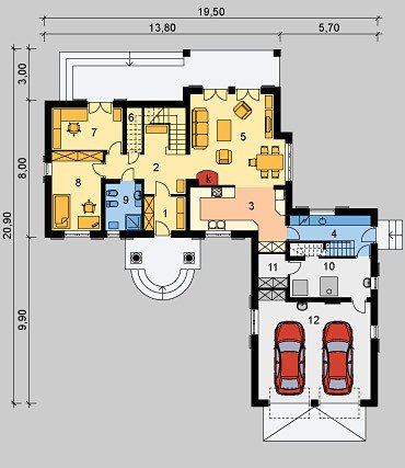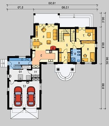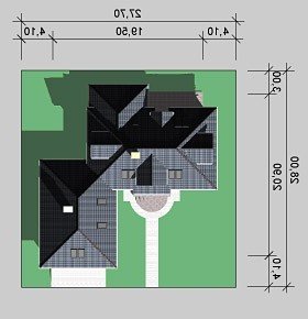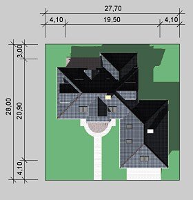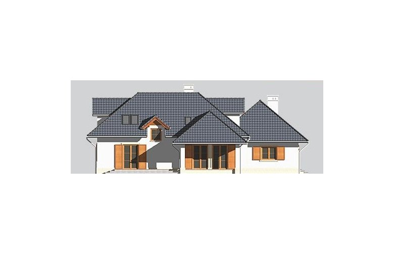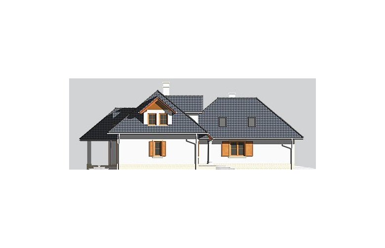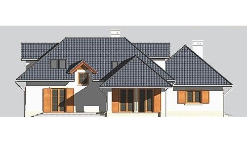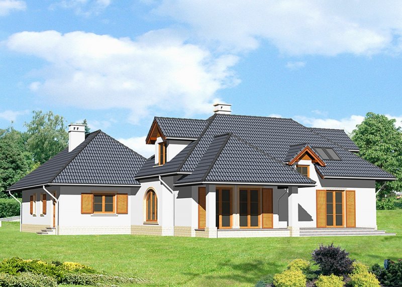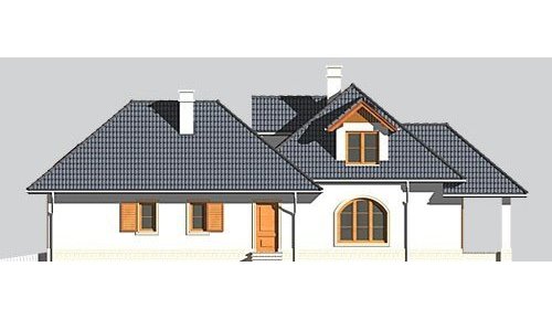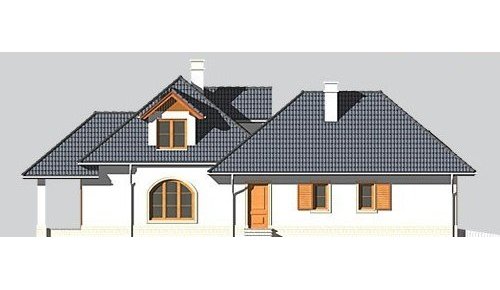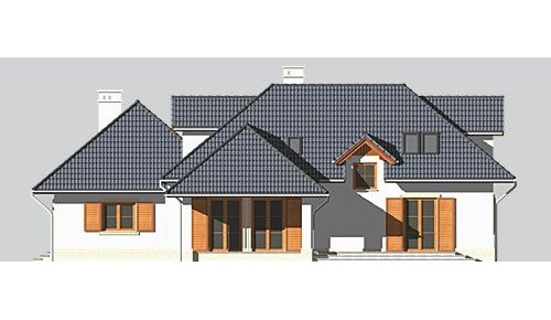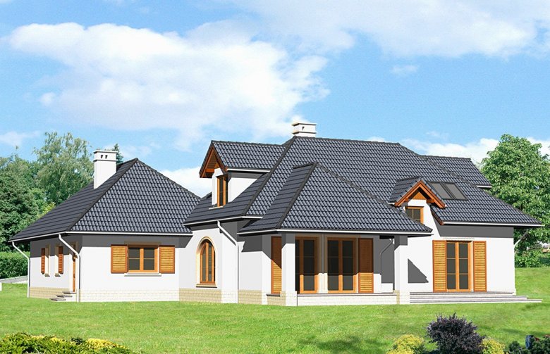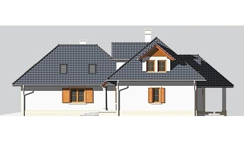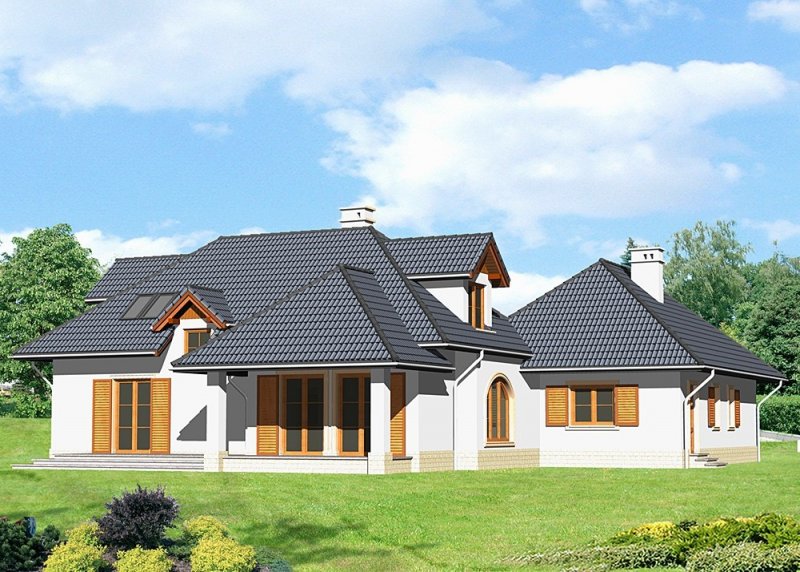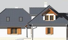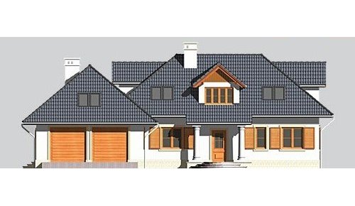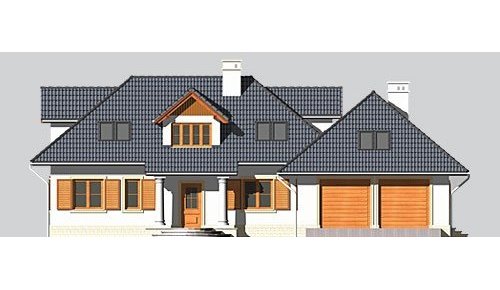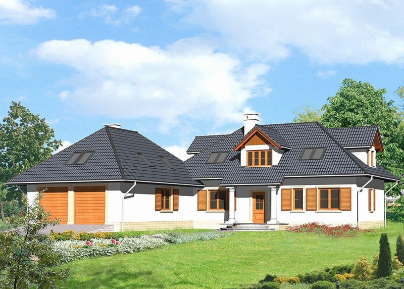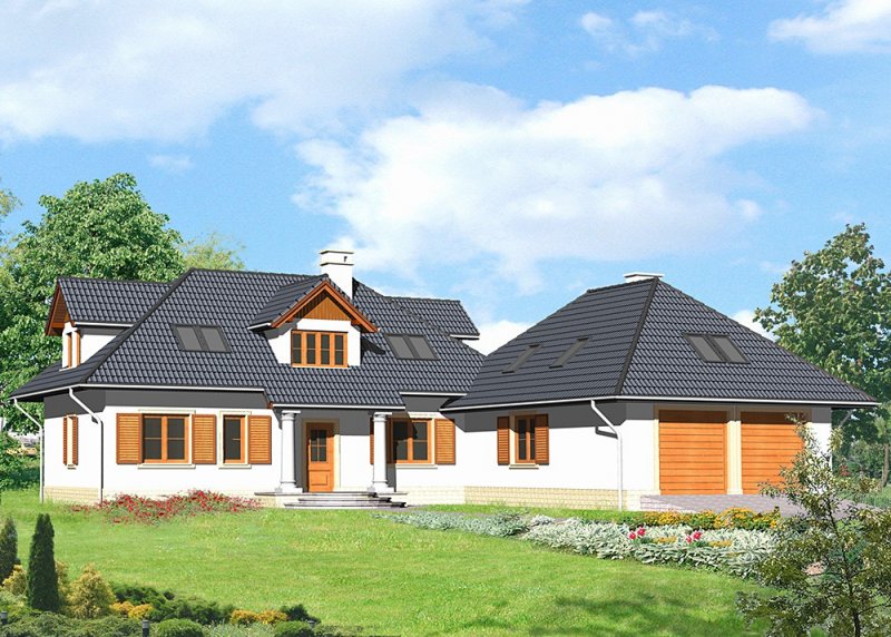 Dom jednorodzinny, parterowy, z poddaszem użytkowym oraz dwustanowiskowym garażem.