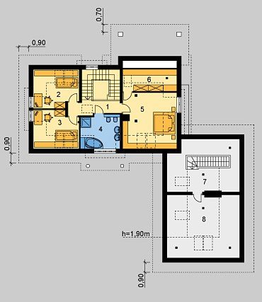 - Elewacje: wykończone tynkiem silikonowym, cokół obłożony płytkami klinkierowymi
