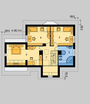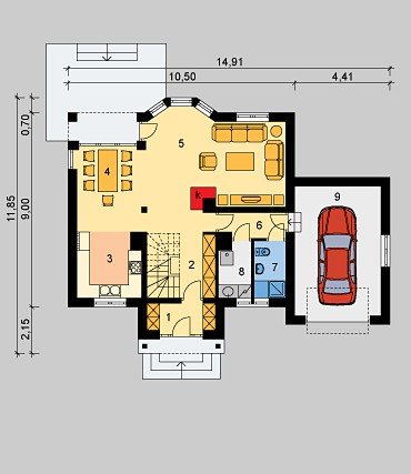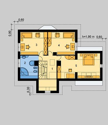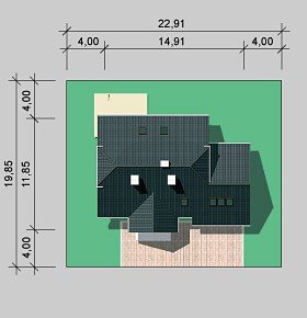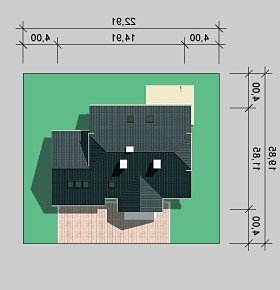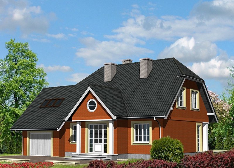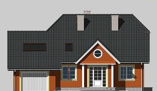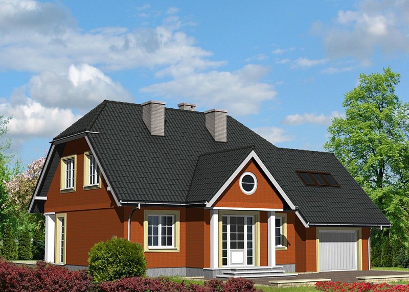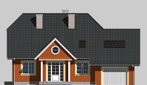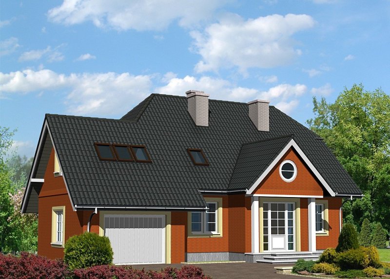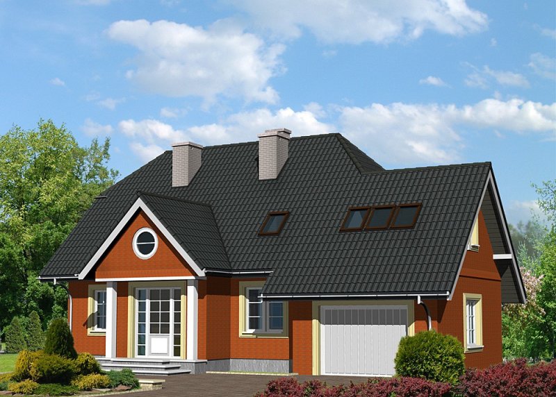 Dom jednorodzinny, parterowy, z poddaszem użytkowym i jednostanowiskowym garażem.
