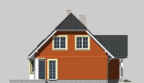 - Elewacje: wykończone tynkiem silikonowym, cokół obłożony płytkami klinkierowymi