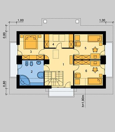 Dom jednorodzinny, parterowy, z poddaszem użytkowym.