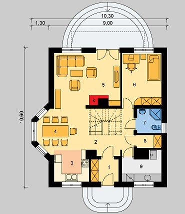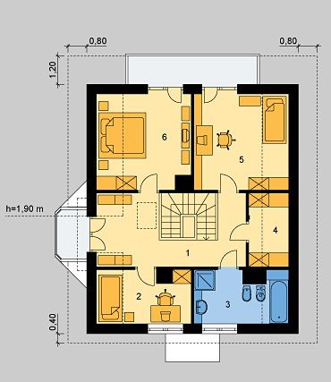 Dom jednorodzinny, parterowy, z poddaszem użytkowym.