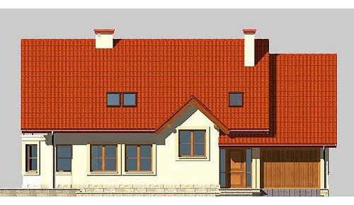 Dom jednorodzinny, parterowy, z poddaszem użytkowym i jednostanowiskowym garażem.