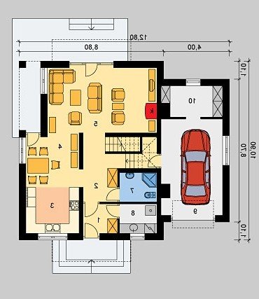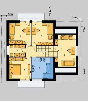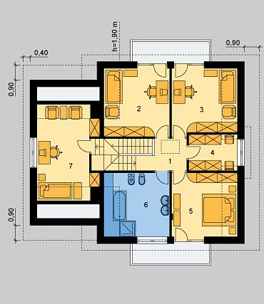 Dom jednorodzinny, parterowy, z poddaszem użytkowym.