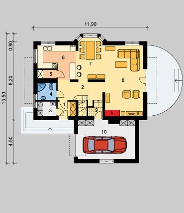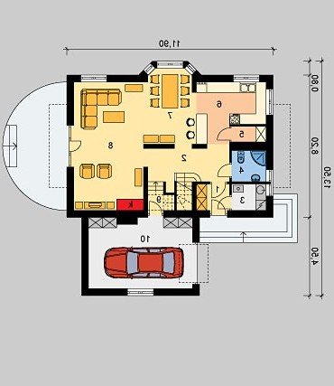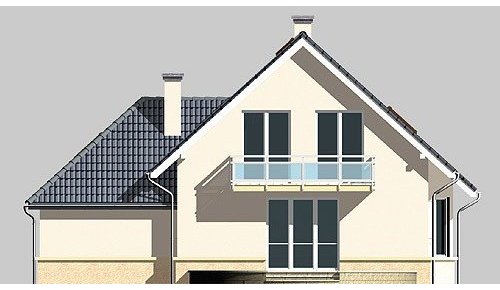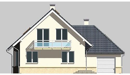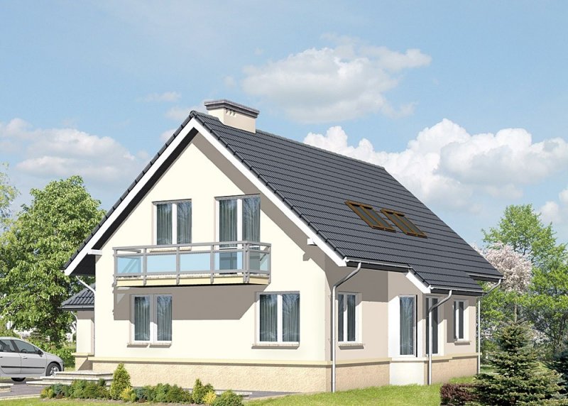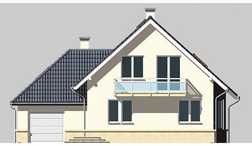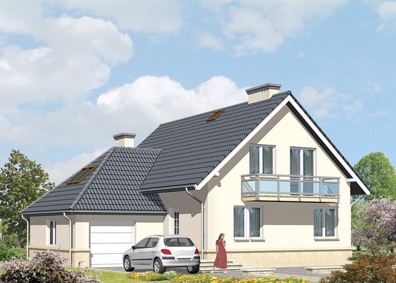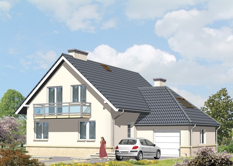 Dom jednorodzinny, parterowy, z poddaszem użytkowy i jednostanowiskowym garażem.