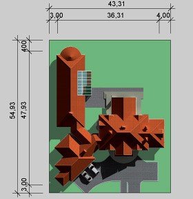 - Min. wymiary działki 43.32x54.93 m