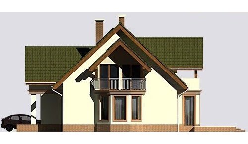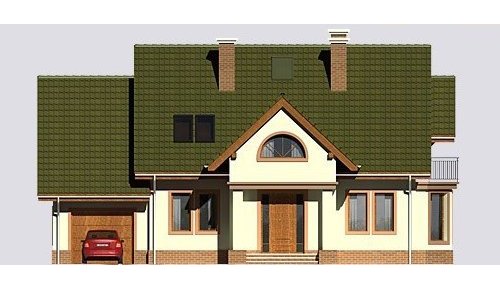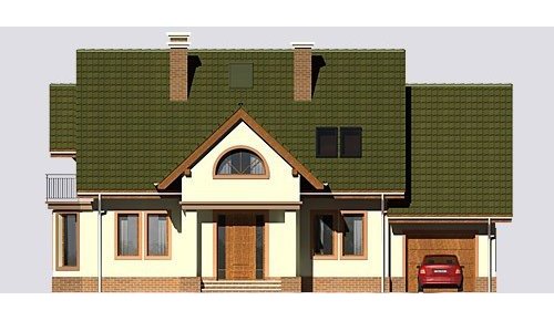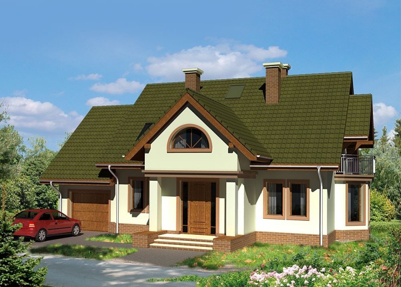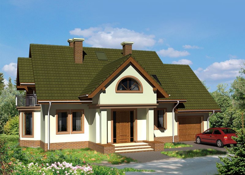 Dom jednorodzinny, parterowy, z poddaszem użytkowym oraz jednostanowiskowym garażem.