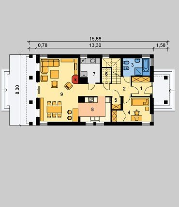 9. Pokój dzienny z jadalnią 31.39m